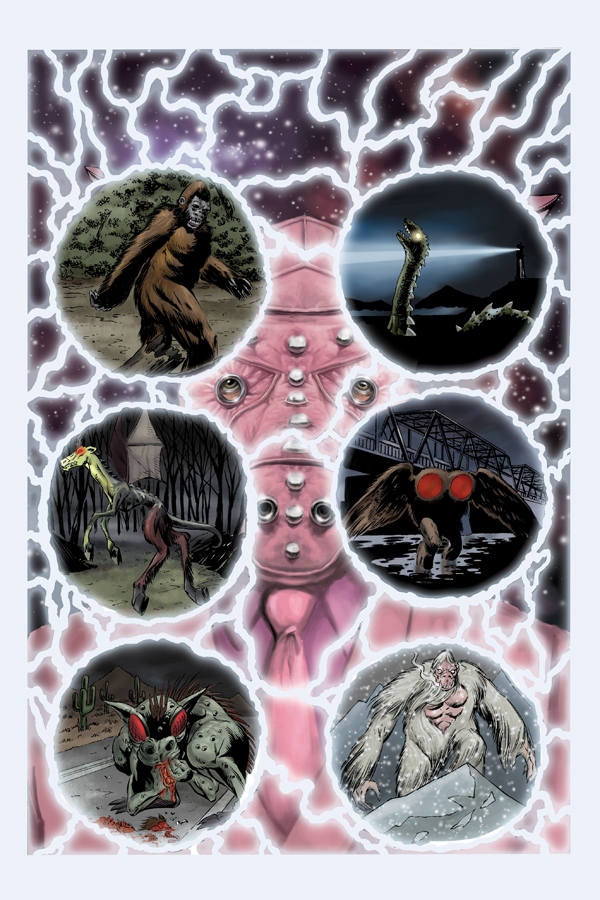 Walter Flanagan's artwork isn't bad and is made wonderful thanks to Ryan Jensen's color, especially in the "town of sins" where the colors look painted on. The problems with the artwork are mostly outside this town. Like the story, too much is going on in the design of Cryptozoic Man. Our hero is all over the place, especially when compared to the more simplistic monsters he's going to fight, which include the Loch Ness monster, Bigfoot, the Jersey Devil, Mothman, Chupacabra and the Abominable Snowman. The aliens are classic little grey men but aren't drawn very well with odd looking giraffe-like necks and wrinkles. Without the colors, the art would not be as enjoyable and even with them little quirks make it hard to enjoy at times. But there is some beautiful artwork in there, specifically three panels which show a guy lose his skin and become nothing but bones, then he's reduced to nothing but dust. If more panels were like this the artwork would be an astonishing wonder. Unfortunately, no other panel even comes close to matching this grim transformation sequence.