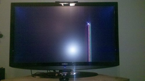 The Kinect has a few things over the Wii and the Move. Besides it being a great way to pretend you live in the Minority Report universe, it is controller free. So there is no chance that you could lets say throw your motion sensing controller at your $400+ TV. Well, you'd be half right. Apparently a blogger by the name of Phil Villarreal was using his Kinect, and spiked his ceiling fan's chain into his TV. As you can see above the chain caused a very nice looking rainbow effect to permanently be stuck on his TV. As sad as this is Mr. Villarreal gave some good effective advice when it comes to Kinect use saying, "do not under any circumstances play Kinect Sports Volleyball at 1:30 a.m. while standing under a ceiling fan with a dangling chain for a light switch." Hopefully no one else knows the sadness of losing his/her HDTV. However if you ever break you TV in a Kinect related incident please let us know, and we will try not to laugh too hard.