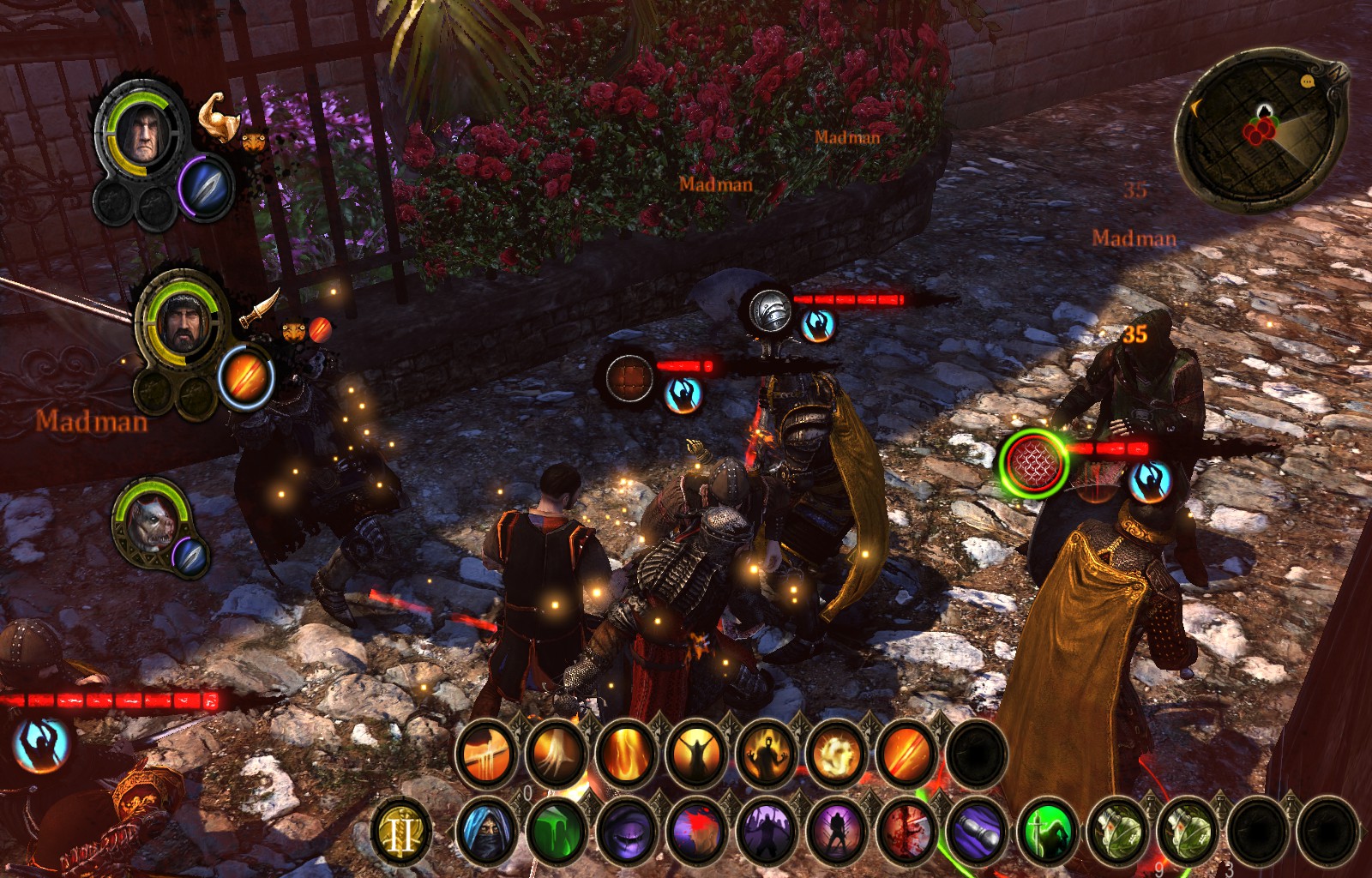 Combat consists of controlling either one or two characters at any given time. Issuing orders and attacks is simple and keeps tensions high. Combat is kept moving because when the interface is opened to use skills, the game does not pause time, it simply slows-down to a crawl. When a battle begins you must be quick on your feet, taking notice of what armor enemies are wearing and what weapons they’re wielding. This is because certain weapon types do extra damage to different armor types. For instance, perforating weapons, like daggers or spears, are more effective when striking chainmail, or slashing weapons, like swords and axes, do more damage against leather-armored foes. The weapon-damage amplifications apply to you as well when enemies strike your characters. So, it’s a good idea to kill the enemies that have weapons that can hurt you more and to also strike-down the foes that you can do increased damage to due to their armor type.