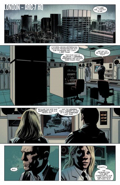 The first three issues of Velvet, the new espionage series by Ed Brubaker and Steve Epting, were suspenseful, well-crafted and surprising. The new issue isn’t quite up to the standards of the first three, although it still has its moments. Main character Velvet Templeton is a strong protagonist, in all senses of the word, but there aren’t yet other great characters to support this series. When we last left Velvet Templeton, on the run for a murder she didn’t commit, she had gone to Belgrade to meet a general’s wife because she had spent a night with agent X-14 (who she is accused of murdering). However, Velvet’s mission went very badly, with both the general and his wife getting killed. While Velvet did get some valuable information, she’s also alerted her secret agent pursuers in ARC-7 to her trail. In issue #4, she is off to Monaco to meet a former KGB agent who might have useful Intel but others are on his trail as well.